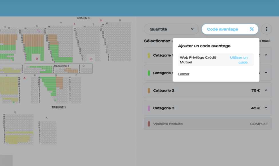 Lors du choix de votre place sur un spectacle et/ou concert éligible à ce tarif :