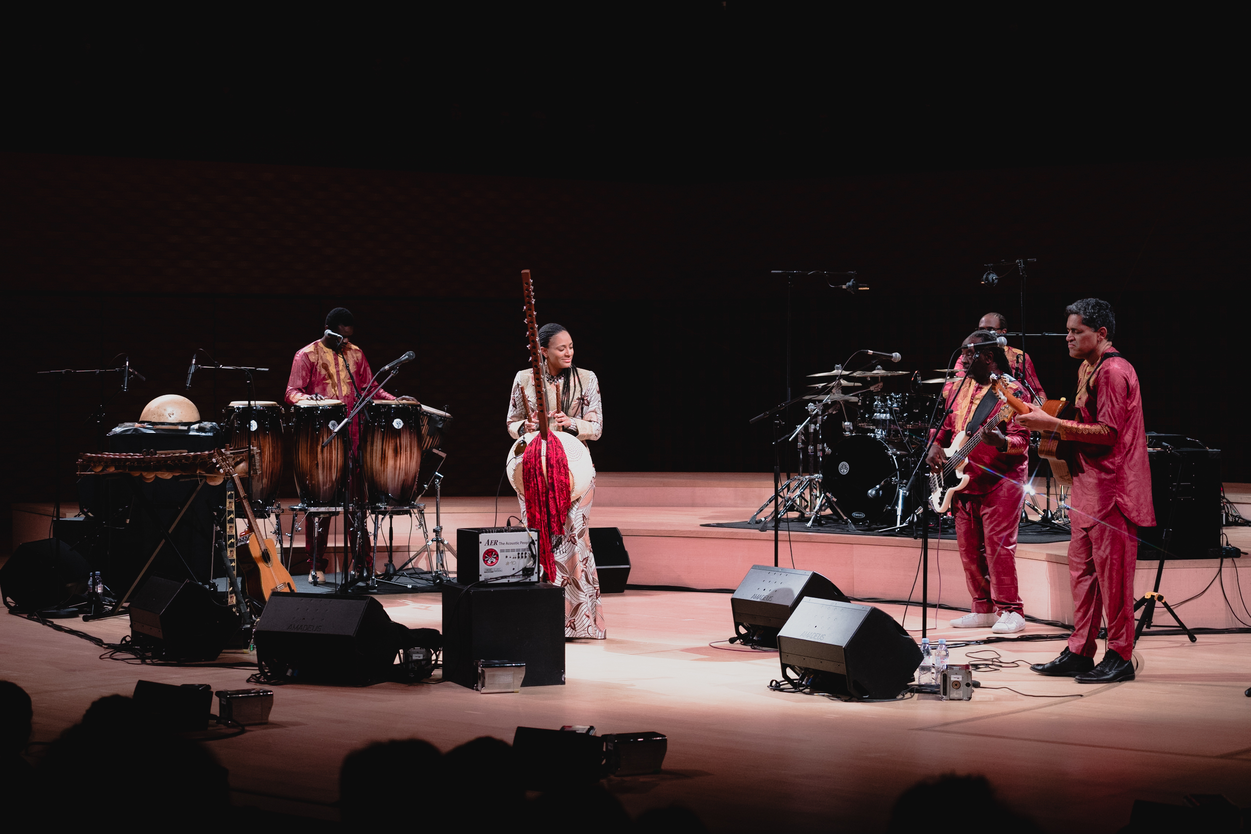 L’exceptionnelle joueuse de kora Sona Jobarteh, a également enchanté l’Auditorium avec sa cette harpe à 21 cordes d’Afrique de l’Ouest, traditionnellement réservée aux hommes. Son charisme irrésistible, la virtuosité et l’élégance de sa voix ont captivé le public.