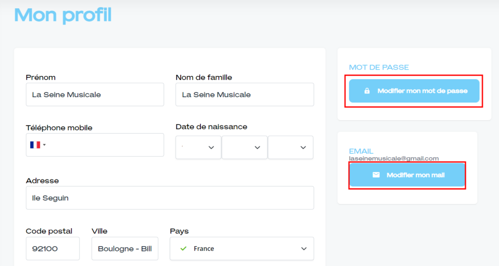 Si vous rencontrez des problèmes de connexion à votre espace personnel, nous vous invitons à vérifier que vous utilisez bien la même adresse email que celle avec laquelle vous avez créé votre compte sur le site de La Seine Musicale.