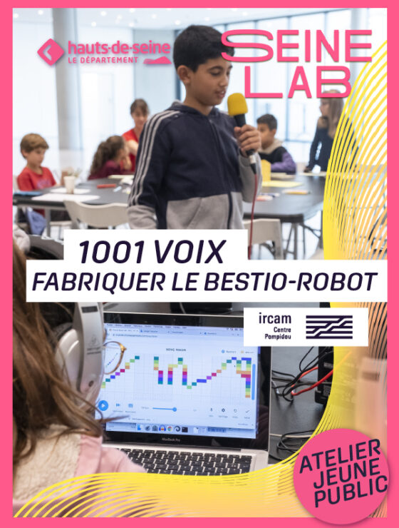 Cet atelier propose d’explorer le monde des machines qui parlent et qui nous font parler. Du bon vieux microphone en passant par les dernières technologies issues de l’intelligence artificielle, les enfants seront invités à donner de la voix et à inventer leur Bestio-Robot à travers des jeux d’écriture où il ne sera sûrement pas question de cahier et de stylo !