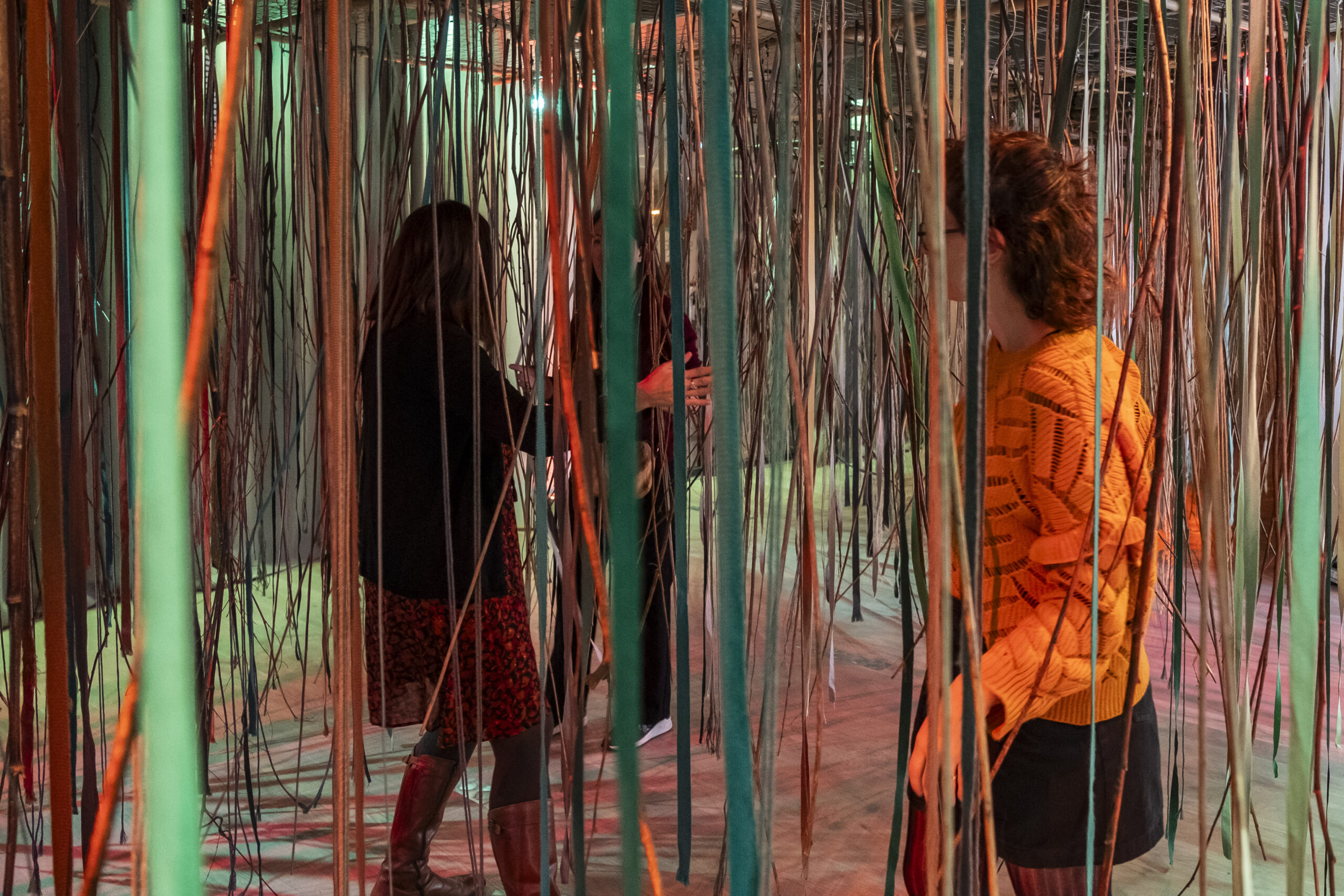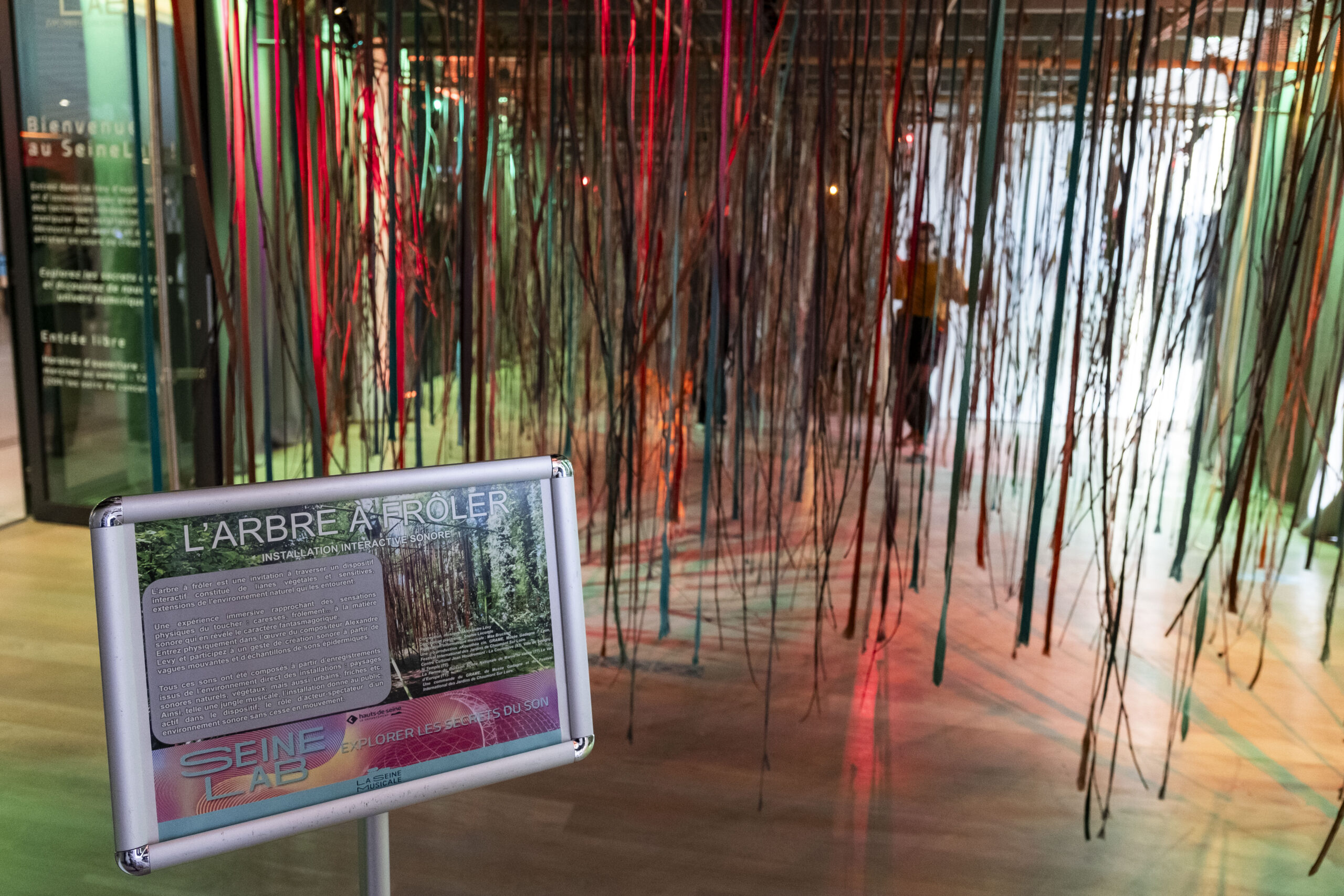 Un univers sonore et tactile constitué de lianes, excroissances poétiques révélées par l’interactivité …