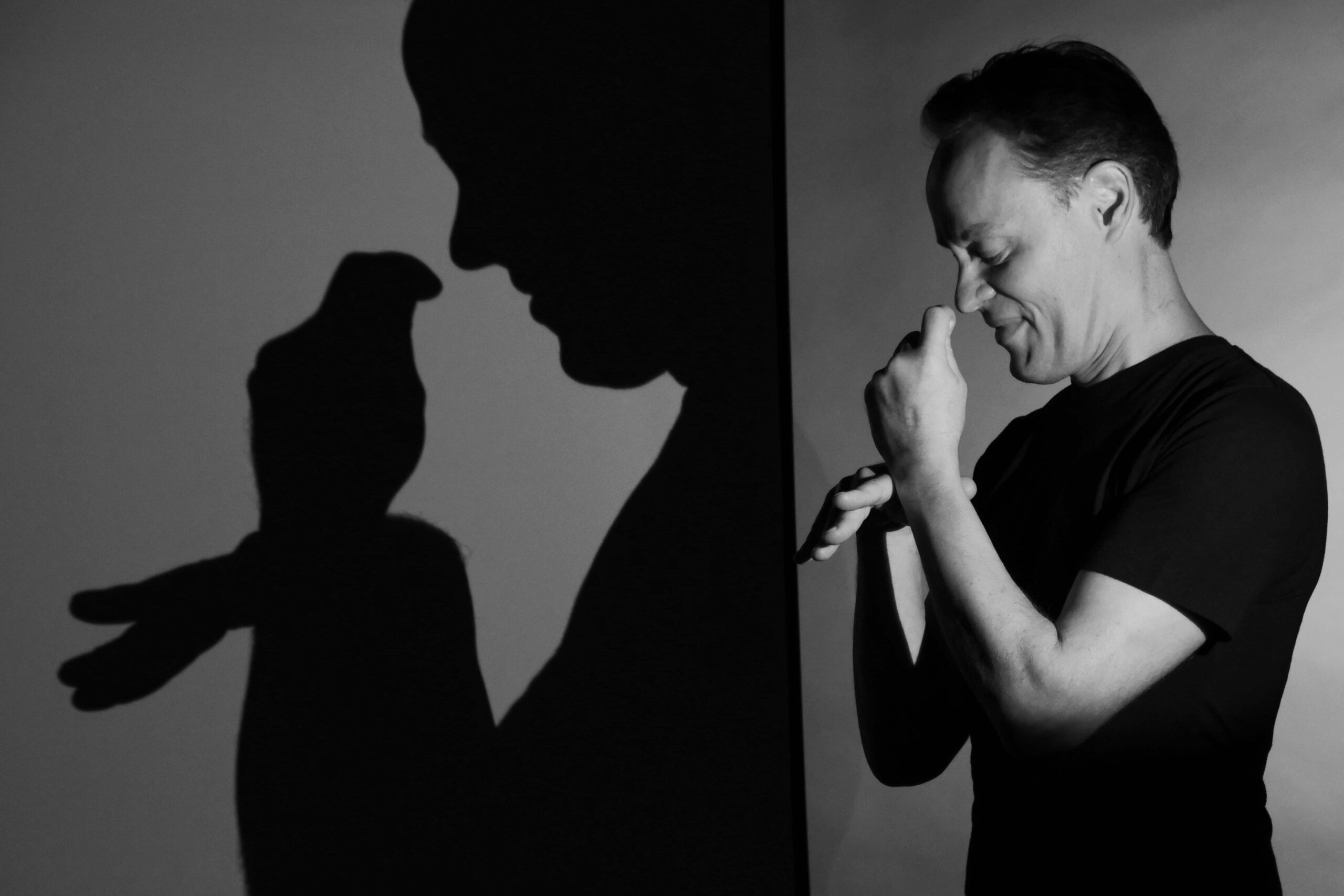 Dans ce spectacle musical et d’ombromanie, cet art ancestral de créer des ombres projetées avec les mains, des Belles au bois dormant, des Petits Poucets, des loups, des chats et maintes autres figures de contes s’animent tout en se dérobant à notre vue, dans la présence absente des jeux d’ombre et de lumière !