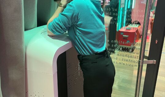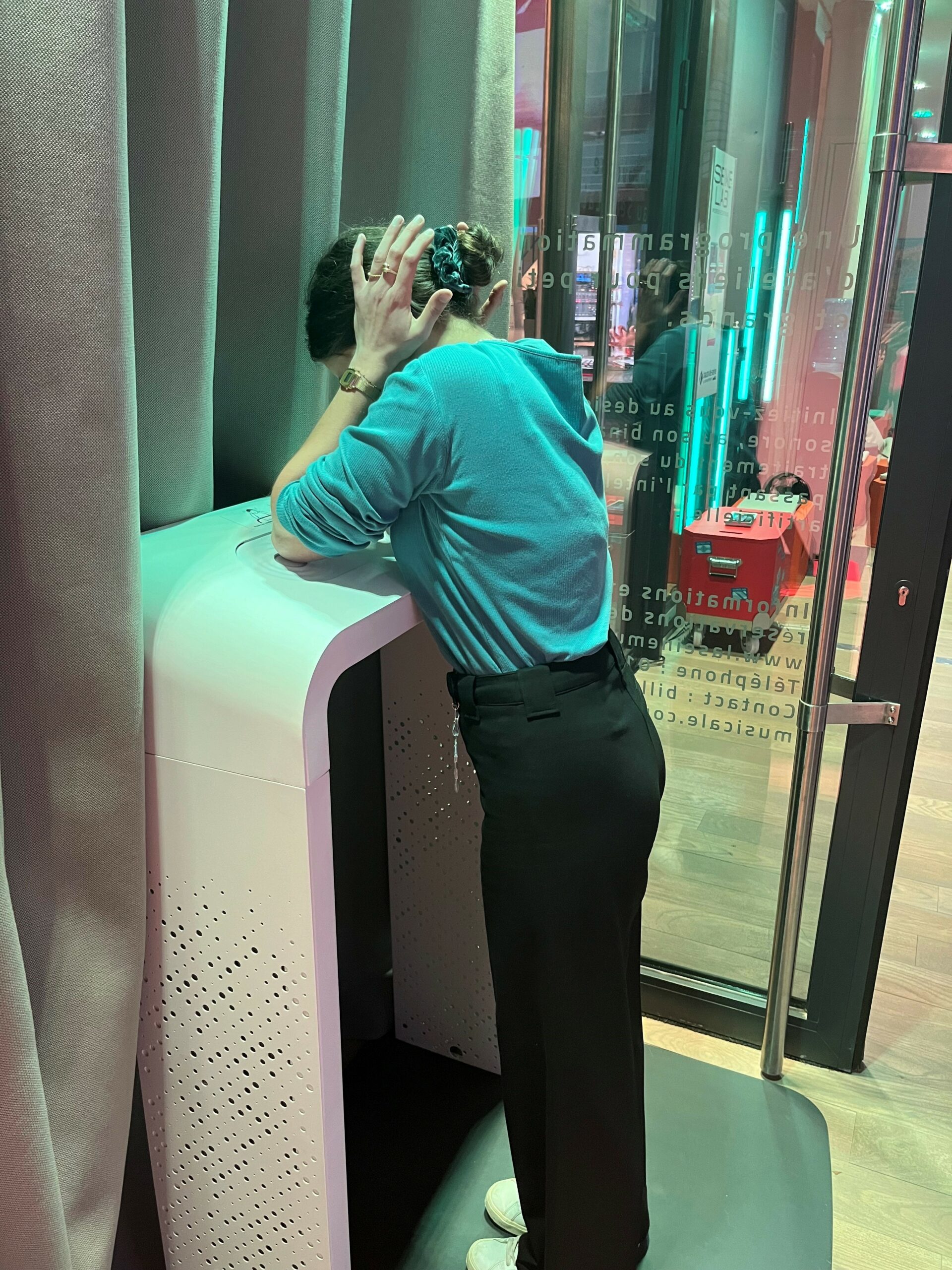 Sans porter d’équipements, il suffit de poser ses coudes sur la borne sonore pour entendre du son.